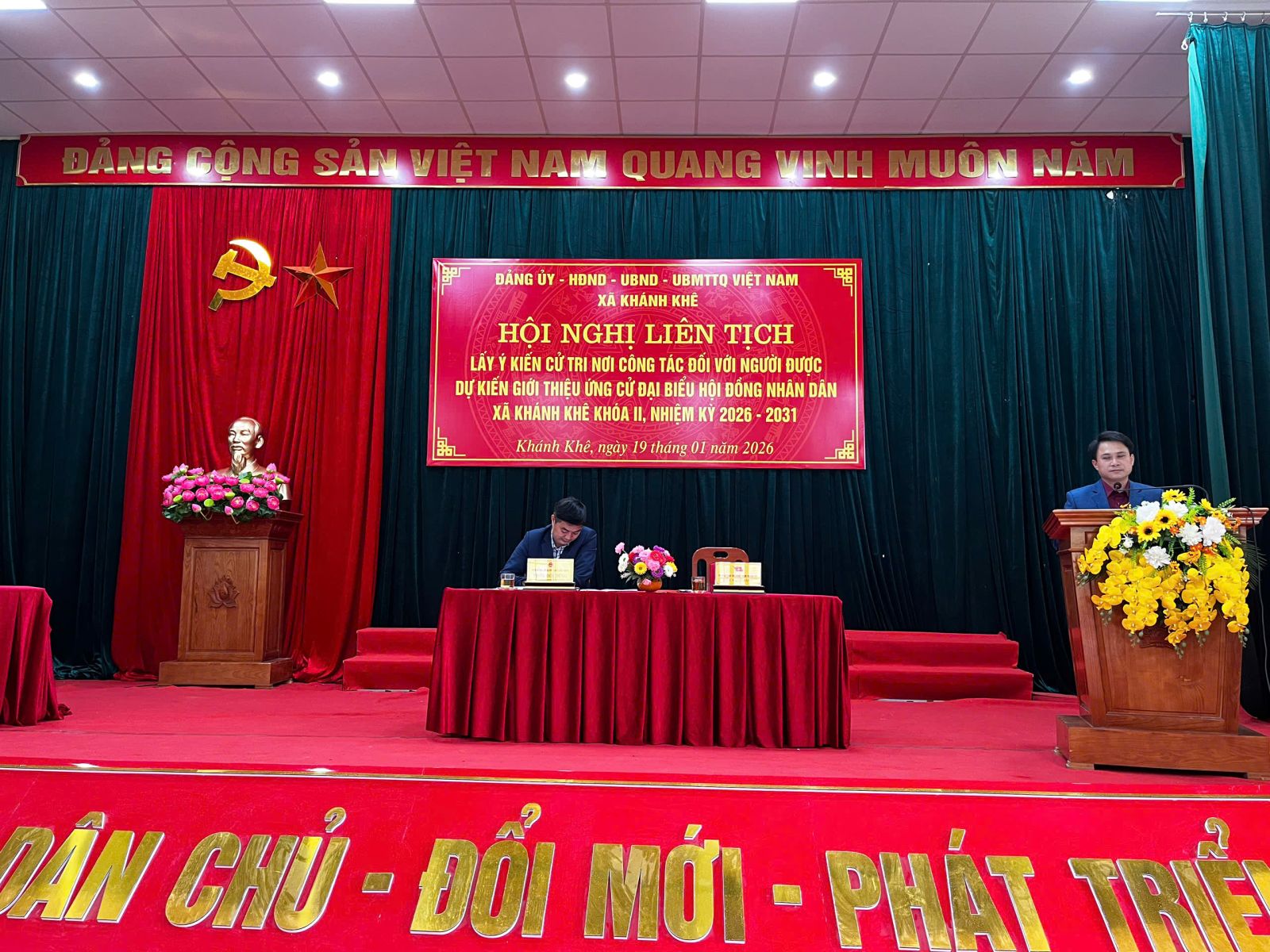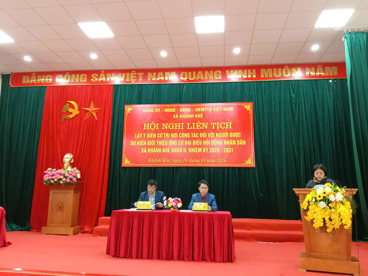Ngày 19/01/2026, Đảng ủy – HĐND – UBND – UB MTTQ Việt Nam xã Khánh Khê tổ chức Hội nghị liên tịch lấy ý kiến cử tri nơi công tác đối với người được dự kiến giới thiệu ứng cử đại biểu Hội đồng nhân dân xã Khánh Khê, nhiệm kỳ 2026–2031.