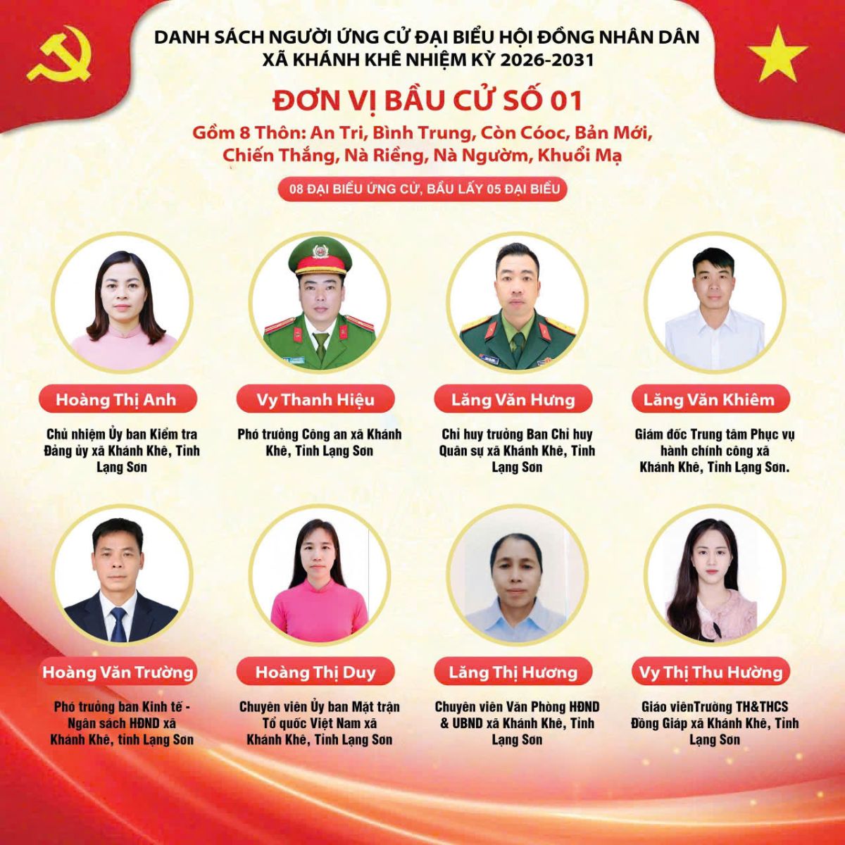 DANH SÁCH CHÍNH THỨC NHỮNG NGƯỜI ĐƯỢC GIỚI THIỆU ỨNG CỬ ĐẠI BIỂU HỘI ĐỒNG NHÂN DÂN XÃ KHÁNH KHÊ KHOÁ II, NHIỆM KỲ 2026 - 2031