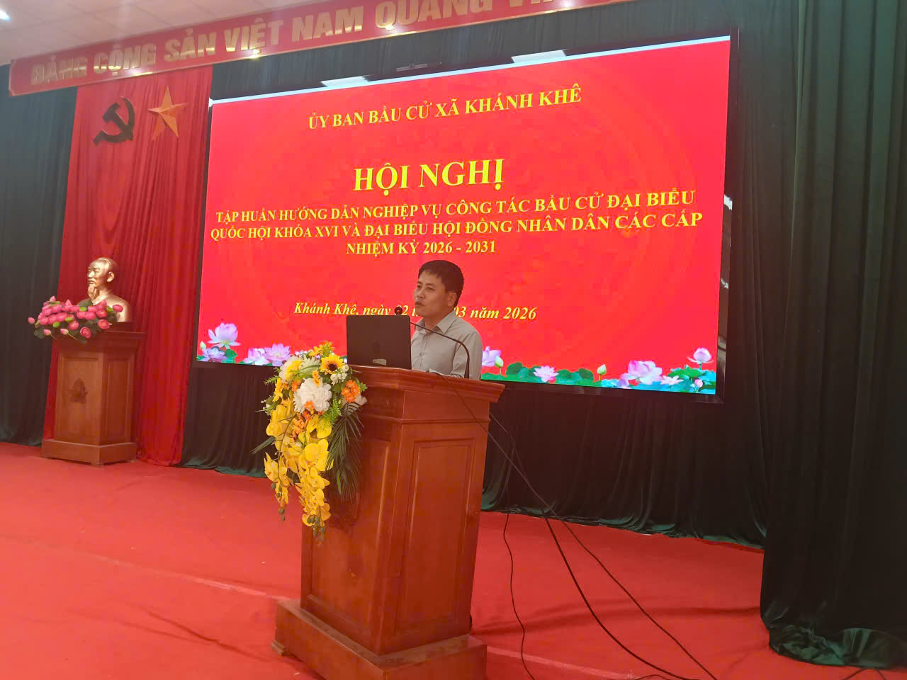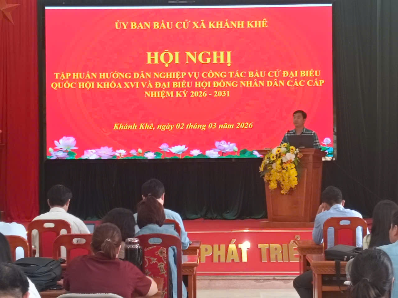 Ngày 02/3/2026, Ủy ban nhân dân xã Khánh Khê tổ chức Hội nghị tập huấn hướng dẫn công tác bầu cử đại biểu Quốc hội khóa XVI và đại biểu Hội đồng nhân dân các cấp, nhiệm kỳ 2026–2031.