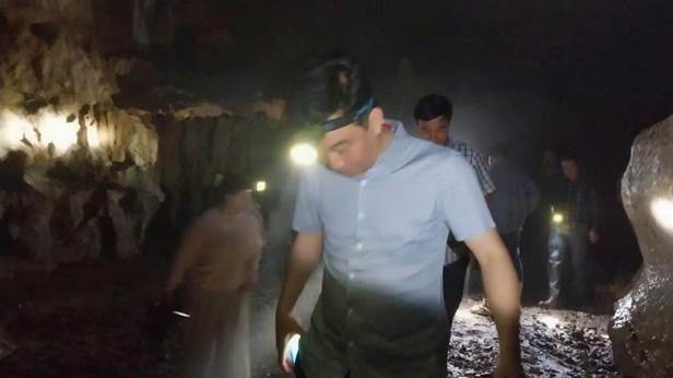 Đồng chí Liễu Văn Hoàng Phó bí thư Đảng ủy, Chủ tịch HĐND xã cùng đồng chí Hoàng Thị Thắm Phó Chủ tịch HĐND xã cùng đoàn khảo sát tại hang Nặm Tốc (Lùng Thương) thôn Nà Tao, xã Khánh Khê
