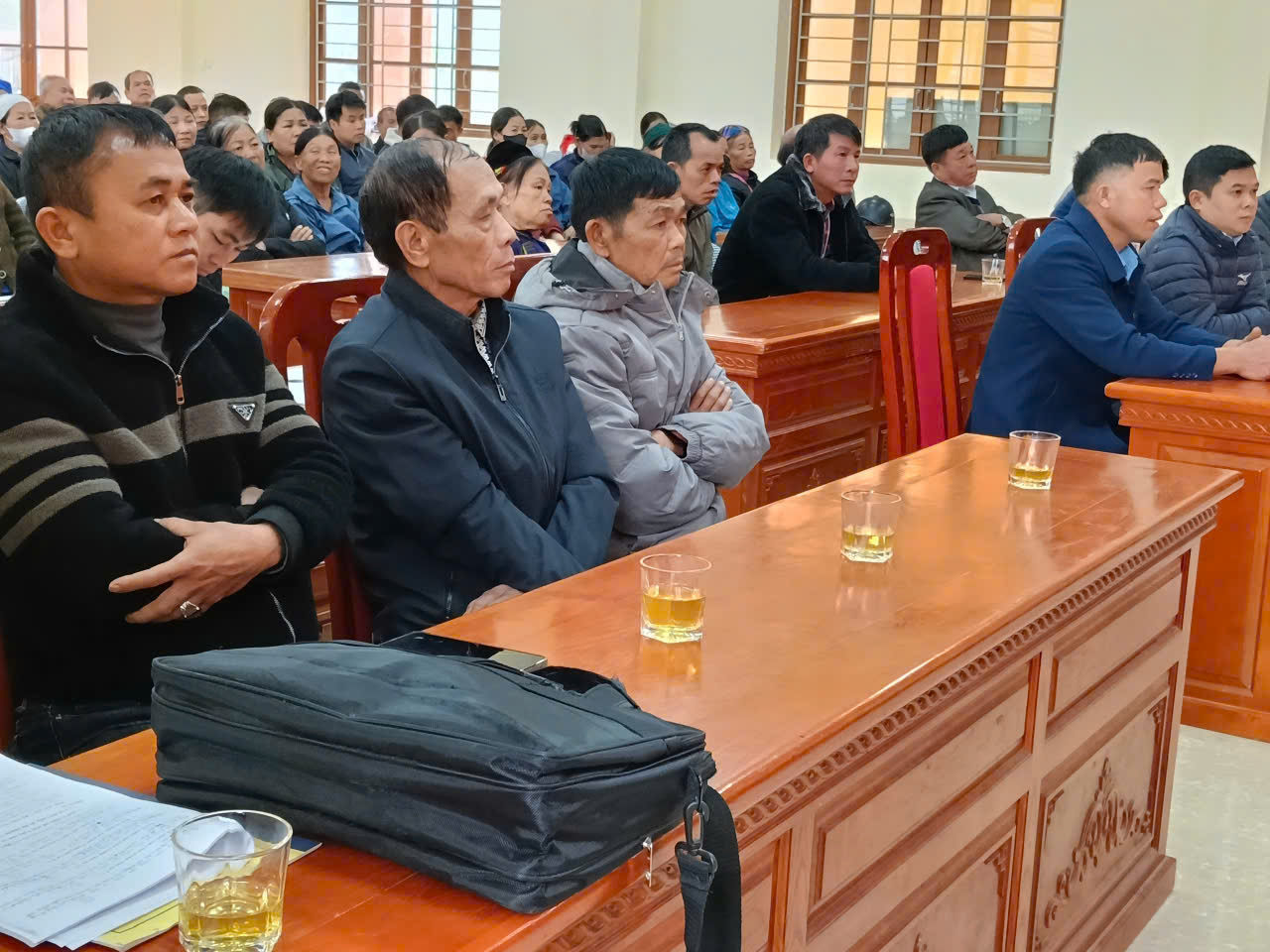 Cử tri thôn Khau Khe, thôn Xuân Lũng lắng nghe Chương trình hành động của các ứng cử viên tại hội nghị