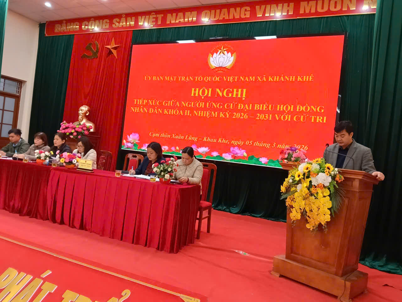 Sáng ngày 05/3/2026, Ủy ban MTTQ xã phối hợp tổ chức Hội nghị tiếp xúc cử tri với những người ứng cử đại biểu Hội đồng nhân dân (HĐND) xã nhiệm kỳ 2026 – 2031 tại đơn vị bầu cử số 02, khu vực bỏ phiếu số 09 và số 10, thôn Khau Khe, thôn Xuân Lũng xã Khánh khê.