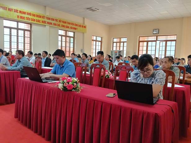 Đại diện lãnh đạo, chuyên viên phòng Văn hóa, Lãnh đạo Trung tâm dịch vụ công ích và các đại biểu dự hội nghị tập huấn công tác bảo đảm an toàn thực phẩm lĩnh vực nông nghiệp và tuyên truyền văn minh thương mại