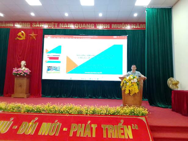 Đồng chí Hứa Thanh Sơn – Đội phó đội Quản lý thị trường số 2 truyền đạt nội dung tập huấn tại hội nghị