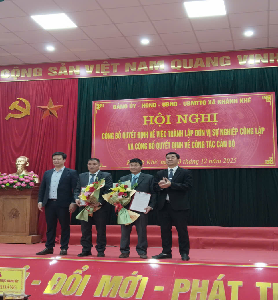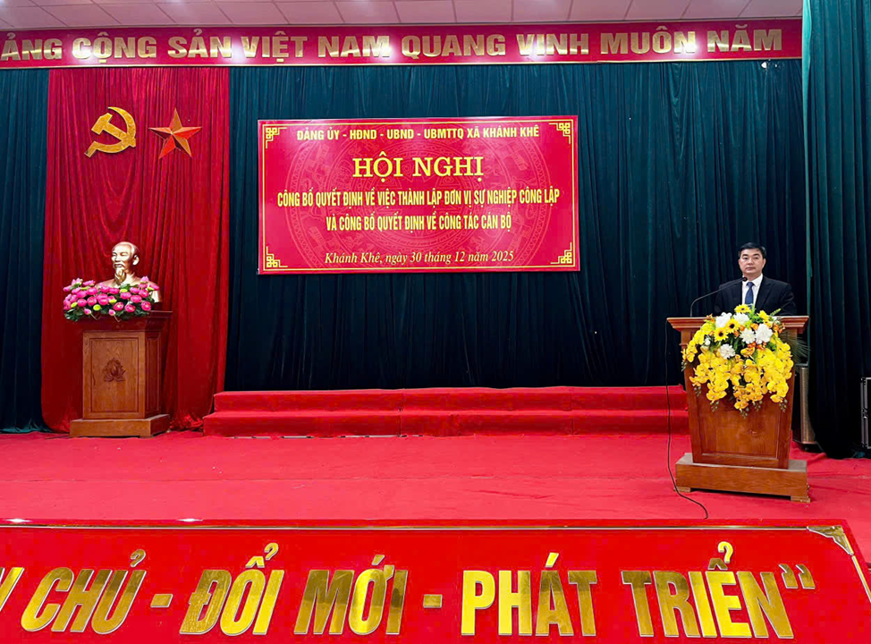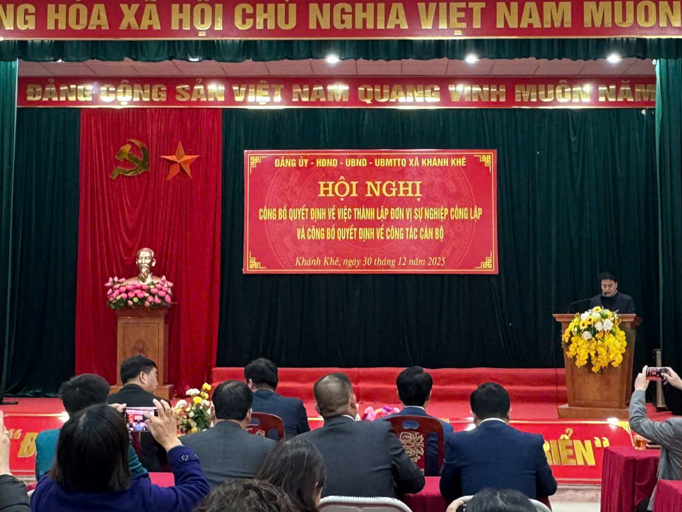 Ngày 30/12/2025, UBND xã Khánh Khê tổ chức Hội nghị công bố quyết định về việc thành lập đơn vị sự nghiệp công lập và công bố các quyết định về công tác cán bộ.