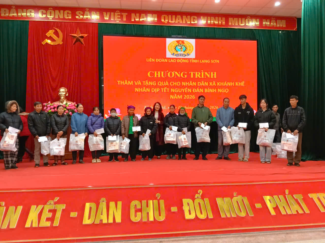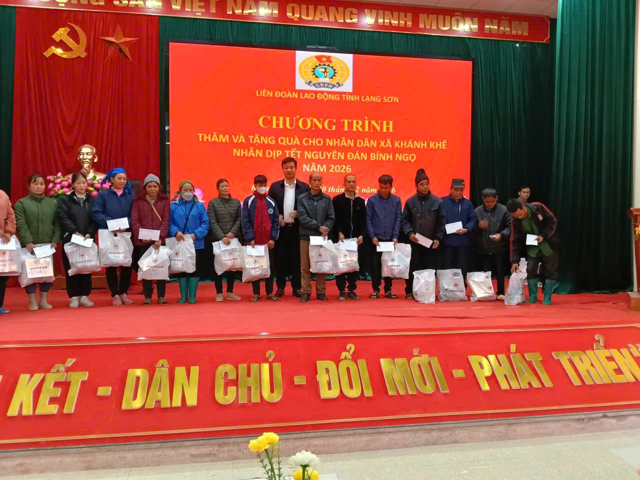 UBND XÃ KHÁNH KHÊ PHỐI HỢP VỚI LIÊN ĐOÀN LAO ĐỘNG TỈNH LẠNG SƠN TỔ CHỨC CHƯƠNG TRÌNH THĂM, TẶNG QUÀ TẾT NGUYÊN ĐÁN BÍNH NGỌ NĂM 2026 CHO NGƯỜI DÂN TẠI XÃ KHÁNH KHÊ
