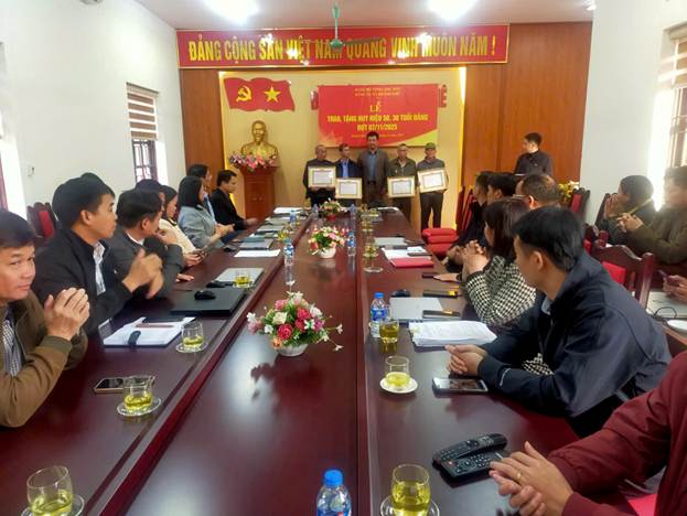 Những hình ảnh trao tặng huy hiệu Đảng tại Hội trường Đảng ủy xã