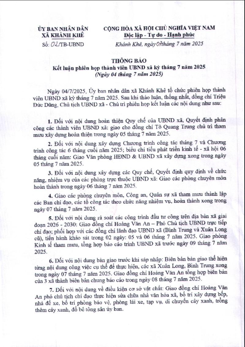 | Tiêu đề văn bản | Thông báo kết luận kỳ họp UBND thường kỳ tháng 7 năm 2025 (ngày 04/7/2025) | ||
